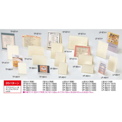 | 商品名 | アクリルメニュー&サンプルプライス 山型 タテ(両面) |